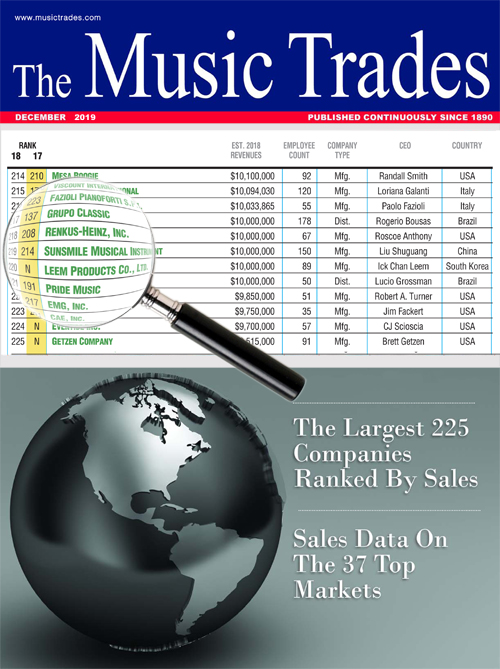 In the December Issue of 2018 Music Trade Show Magazine, Sunsmile ranked 219th in The Global 225 Report. The Global 225 Report, sales rankings of the World's Largest Top 225 manufacturers, is an effort to help distributors and retailers better understand the dynamics of the international industry.