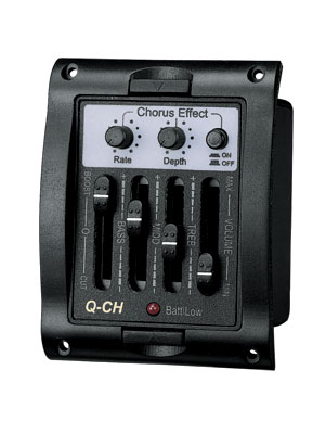 3-band puls volume & chorus effector chorus rate & depth Bass:+/-12dB Mid:+/-12dB Treb:+/-12dB Battery:9V snap