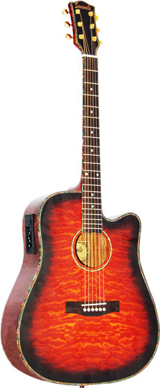 41¨¨ Overall Length648mm/25.5" Scale LengthSpruce TopSapele Back & SidesNato NeckPoplar Laminated Fingerboard & BridgePearloid Body Binding & InlayChrome Die-cast TunersGold Die-cast TunersMulti-ABS with Pearloid Inlay Rosette4 Section EQ