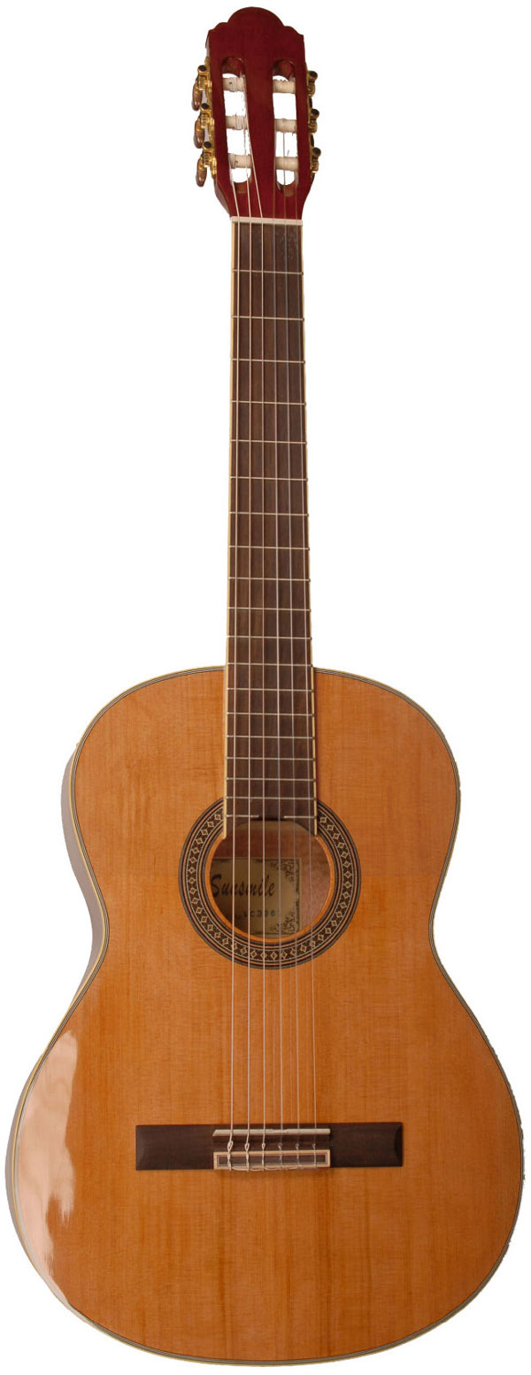 39¨¨ Overall Length650mm/25.6" Scale LengthSolid Cedar Top Sapele Back & SidesNato NeckPoplar Laminated Fingerboard & Bridge6-Ply ABS Body Binding3-in-Line Tuners with Pearloid ButtonWood Mosaic RosetteBone Nut & Saddle