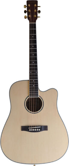 41¨¨ Overall Length648mm/25.5" Scale LengthSolid Spruce TopCatalpa Back & SidesCatalpa NeckPoplar Laminated Fingerboard & Bridge6-Ply ABS Body BindingGold Die-cast TunersMulti-ABS with Pearloid Inlay RosetteBone Nut & Saddle