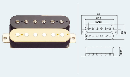 Model: PU VHAZ Description: alnico v bar magnet, 6 adjustable.6 fixed pole piece 50¨s vintage sound.smooth and warmth tone neck, bridge coil winding better balance tone. zebra style. four conductor output cable PU VHAZ-N(neck) 7.2K 3.8H PU VHAZ-B( bridge) 8.0K 5.0H