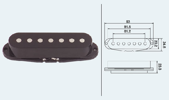 Description: flat top pole piece. 7 string single coil