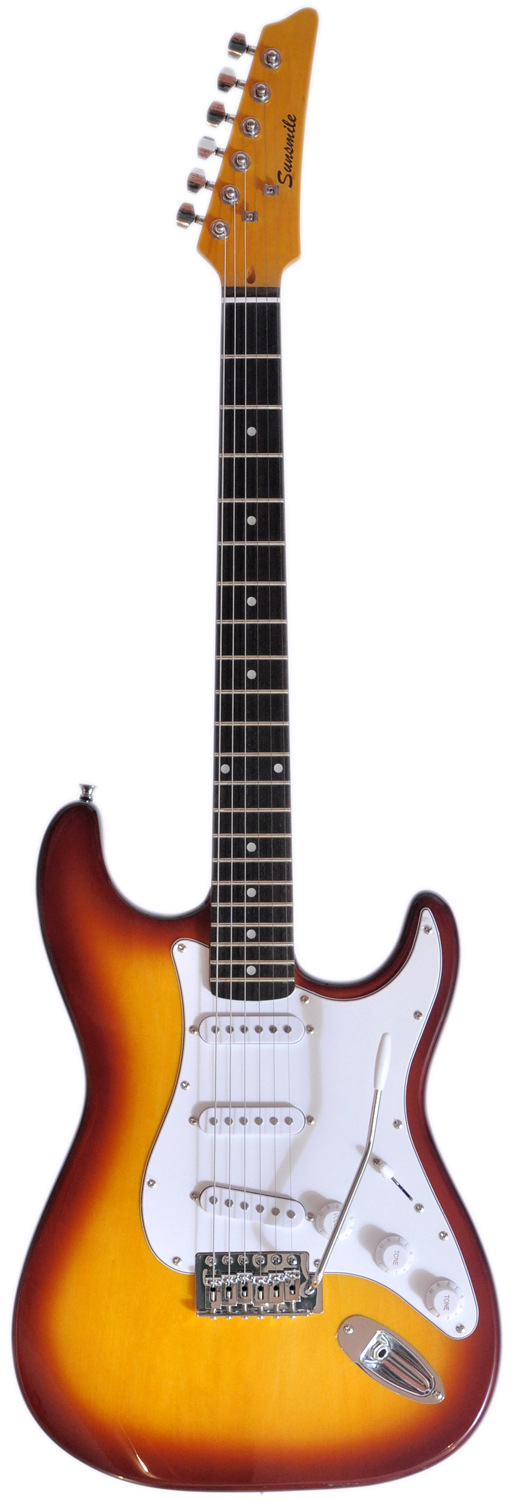 Bolt-on ConstructionBasswood BodyMaple Neck, Rosewood stripeRosewood FingerboardDie-cast Tuning Machines648mm/ 25.5", 21 Frets1V, 2T, 5-Way SelectorS-S-S PickupsVintage TremoloChrome Hardware3-Ply White Pickguard