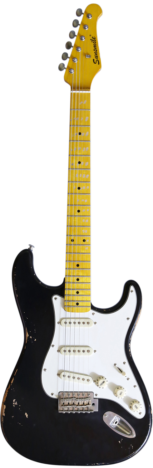 Bolt-on ConstructionMohogany BodyHard Maple Neck & FingerboardDie Cast Tuning Machines648mm/25.5", 21 Frets1V, 2T, 5-Way SelectorS-S-S PickupsVintage TremoloChrome Hardware3-Ply White Pickguard