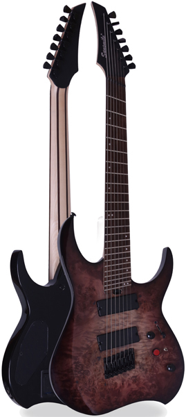 Bolt-On ConstructionMahogany Body with Poplar Eye Burl TopHard Maple NeckLaurel FingerboardDie-cast Tuning Machines25.5" - 27¡±, 24 Fanned Frets1V, 1T, 3-Way Selector9v Active Dynamic System£¨Wide Gain Adjustable Range Clean to Overdrive£©H-H PickupsSingle Saddle Bridge SystemBlack Hardware