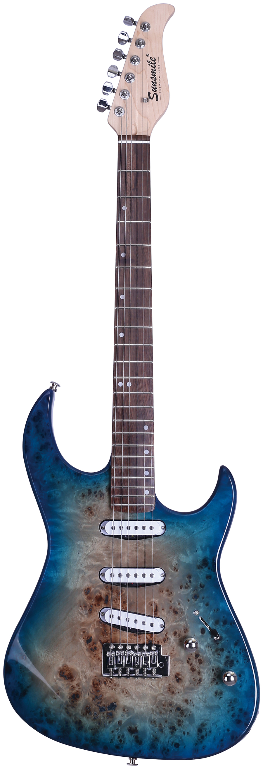 Bolt-on ConstructionMahogany Body with Poplar Eye Burl TopHard Maple NeckLaurel FingerboardDie-cast Tuning Machines648mm/25.5", 22 Frets1V, 1T, 3-Way SelectorS-S-S PickupsVintage TremoloChrome Hardware