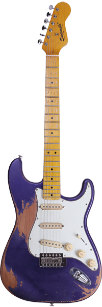 Bolt-on ConstructionAlder Body, Relic Sparkle PurpleHard Maple Neck & FingerboardDie-cast Tuning Machines648mm/25.5", 21 Frets1V, 2T, 5-Way SelectorS-S-S PickupsVintage TremoloChrome Hardware3-Ply White Pickguard