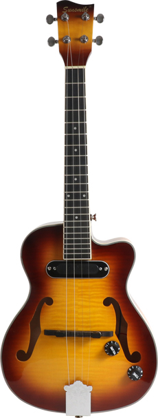 26"Quilted Maple TopQuilted Maple Back & SidesOkoume NeckPoplar Laminated FingerboardRosewood Bridge21 Frets6-Ply ABS Body BindingChrome 4-in-Line TunersChrome Hardware