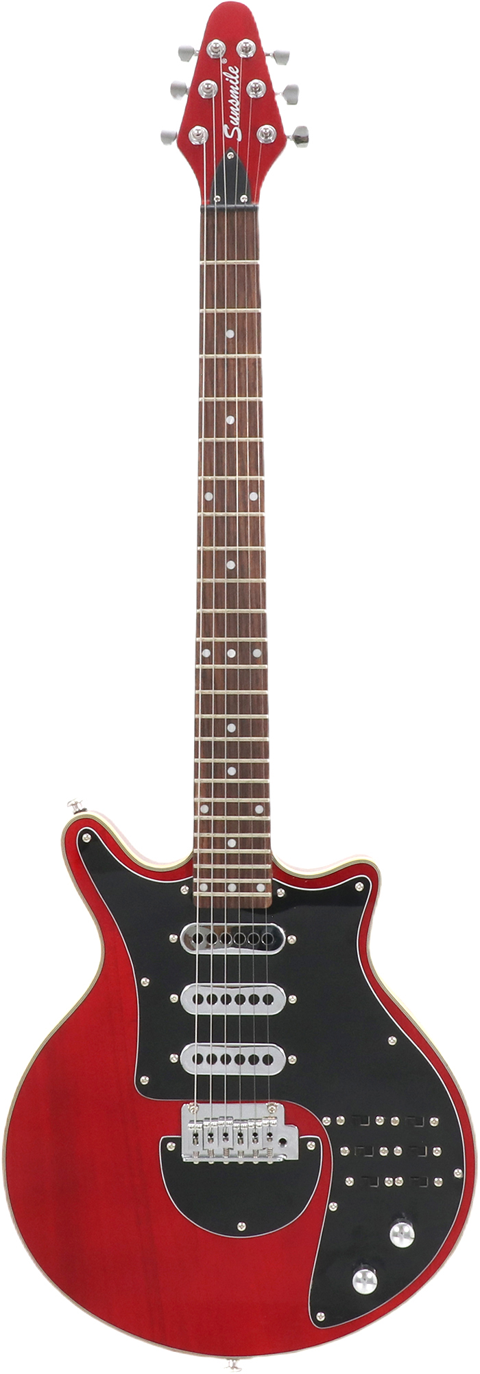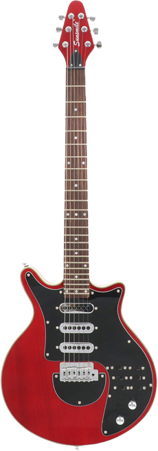 Set Neck ConstructionMahogany BodyMahogany NeckPoplar Laminated FingerboardDie-cast Tuning Machines648mm/ 25.5", 24 Frets1V, 1T, Slide SwitchBrian May Red Style PickUpsVintage TremoloChrome Hardware3-Play Black Pickguard