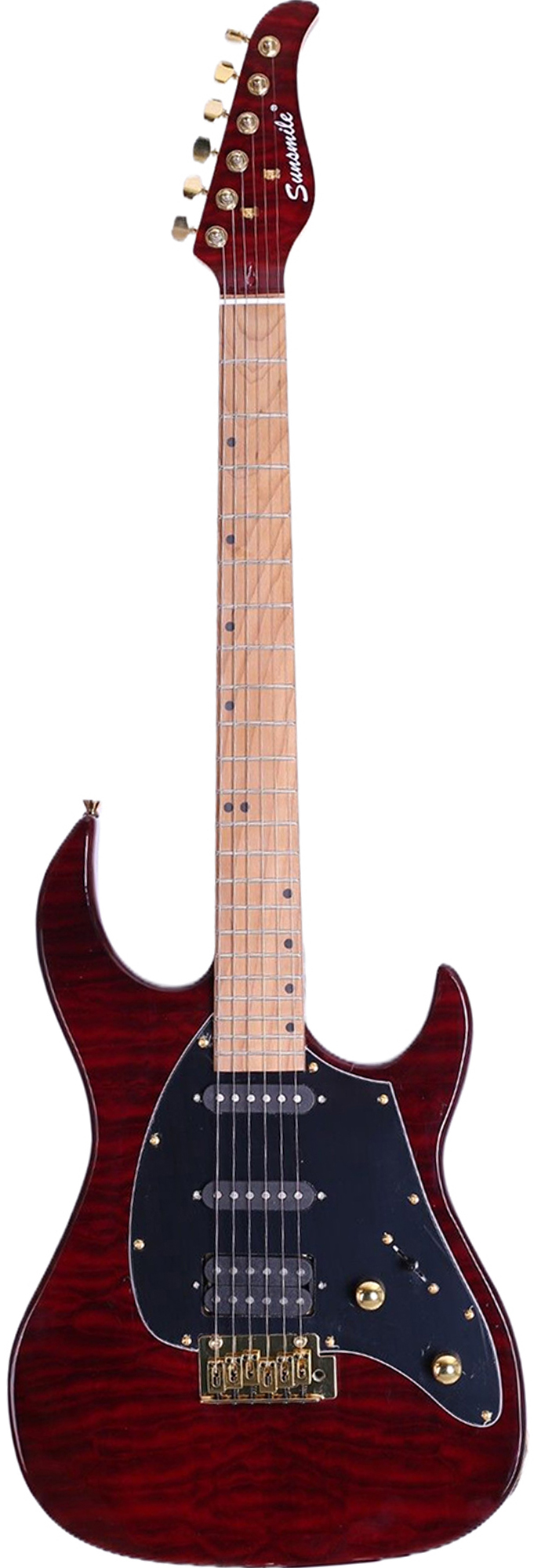 Bolt-on Construction Basswood Body Printed Quilted Maple Top Hard Maple Neck & Fingerboard Die-cast Tuning Machines 648mm/25.5", 22 Frets 1V, 1T, 3-Way Selector S-S-H Pickups Vintage Tremolo Gold Hardware