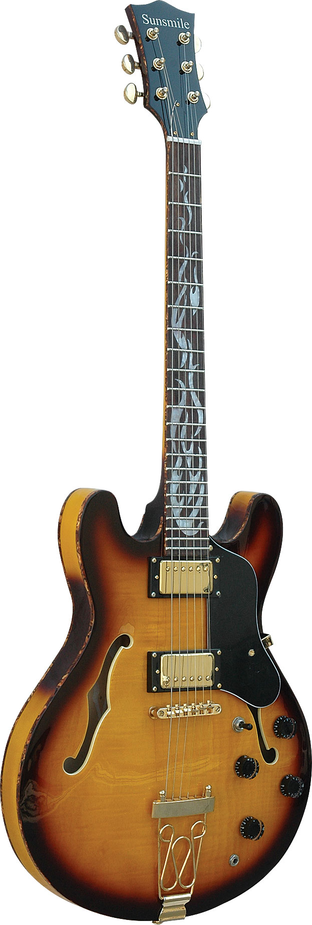 Set-Neck ConstructionBasswood BodyHard Maple NeckPoplar Laminated FingerboardGrover Style Tuning Machines628mm/24.75", 22 Frets2V, 2T, 3-Way ToggleH-H PickupsTrapeze TailpiecesGold Hardware3-Ply Black Pickguard