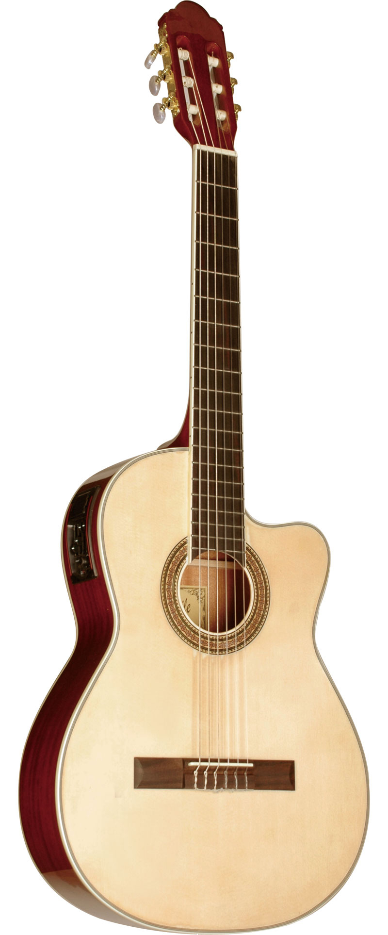 39¨¨ Overall Length650mm/25.6" Scale LengthSpruce TopSapele Back & SidesNato NeckPoplar Laminated Fingerboard & Bridge6-Ply ABS Body Binding3-in-Line Tuners with Pearloid ButtonDecal Rosette4 Section EQ
