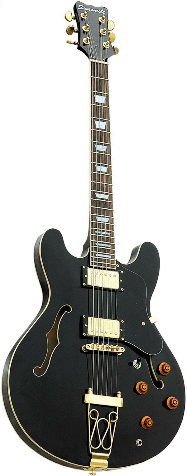 Set-Neck ConstructionBasswood BodyHard Maple NeckPoplar Laminated FingerboardGrover Style Tuning Machines628mm/24.75", 22 Frets2V, 2T, 3-Way ToggleH-H PickupsTrapeze TailpiecesGold Hardware3-Ply Black Pickguard