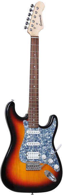 Bolt-on ConstructionBasswood BodyHard Maple NeckPoplar Laminated FingerboardDie-cast Tuning Machines648mm/25.5", 21 Frets1V, 2T, 5-Way SelectorS-S-H PickupsVintage TremoloGold Hardware3-Ply Blue Pearloid Pickguard