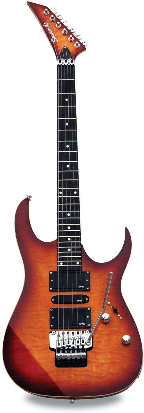 Bolt-on ConstructionBasswood BodyQuilted Maple TopHard Maple Neck Poplar Laminated FingerboardDie-cast Tuning Machines648mm/25.5", 24 Frets1V, 1T, 5-Way SelectorH-S-H (EMG) PickupsDouble Locking TremoloGold Hardware