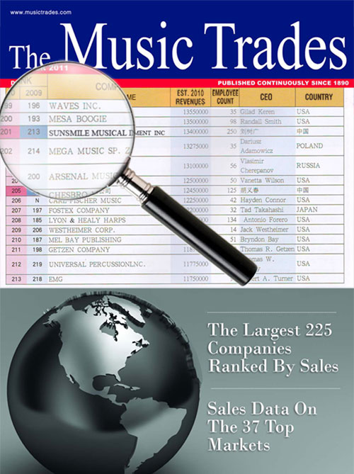 In the December Issue of 2011 Music Trade Show Magazine, Sunsmile ranked 201th in The Global 225 Report. The Global 225 Report, sales rankings of the World's Largest Top 225 manufacturers, is an effort to help distributors and retailers better understand the dynamics of the international industry.