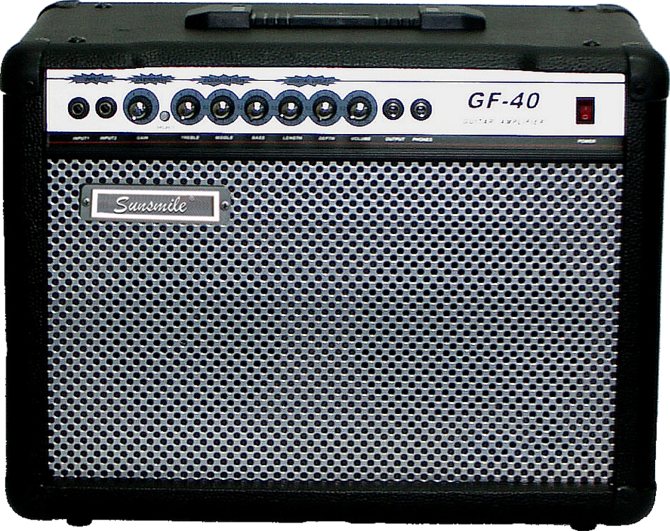 MODEL: GF-40POWER: 40WSPEAKER: 8¡±+6¡±CONTROL: Micro Volume, Gain, Drive Switch, Treble, middle, Bass, Length, Depth, VolumeFEATURES: Overdrive, Digital ReverbDIMENSIONS: 49.5*24*37.5 (mm)WEIGHT: 10.8KG