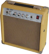 Model: GA-10TPower Output: 10W RMS @ 1.0% THD INTO 8¦¸Input: 1InputSpeaker: 1x6.5¡¯¡¯ 8¦¸(LEAD)Input Sensitivity: Normal 28mVF=1 KHz Volume &Tone MaxNoise: -40dB (Gain Max) -70dB (Gain Min)Controls: Gain Volume High Mid. Low Chorus (Speed)Headphone Power S/W: Dimensions (W)*(H)*(L) 285*112*280Net Weight: 3.3(Kg)