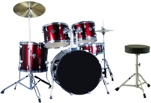 Model: DRS 05 Drums: 22"กม16" Bass Drum 16"กม16" Floor Tom 13"กม10"&12"กม9" Tom Toms 14"X5.5 Snare Drum Hardware: TH-100 Tom Holder C-100 Cymbal Stand S-100 Snare Stand H-100 Hi-hat Stand P-100 Drum Pedal Cymbals:Steel-14"x2,H-16"x1 REMO UK SNAREDrumheads With Cymbal and Seat